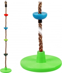 Zábavné a bezpečné dětské šplhací lano s barevnými disky a kulatou plastovou houpačkou pro venkovní hry. Podporuje pohyb, koordinaci a sílu. Disponuje nosností 100 kg a pevným lanem o tloušťce 2,6 cm, ideální k dětskému hřišti nebo k domečku na stromě.