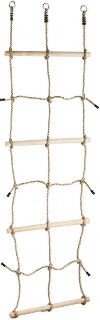 Šplhací síť pro děti je ideální doplněk pro venkovní dobrodružství. Díky dřevěným příčkám a třem závěsným kroužkům poskytuje skvělou zábavu a bezpečnost na moderním dětském hřišti nebo u domečku na stromě.