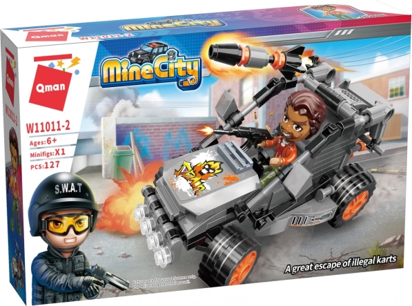 Užijte si dobrodružství s Qman MineCity Únikovou Motokárou! Tato stavebnice nabízí 127 dílků a kreativní hru pro děti od 6 let, kompatibilní s dalšími stavebnicemi.
