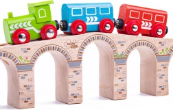 Most BIGJIGS RAIL přidá vaší vláčkodráze působivou výšku i délku. Díky pevnému dřevěnému provedení a hladkým spojům projíždějí vláčky plynule, zatímco pod oblouky je dostatek prostoru i pro vysoké náklady. Elegantní zdobení připomínající kamenné zdivo dodá setu realistický vzhled.