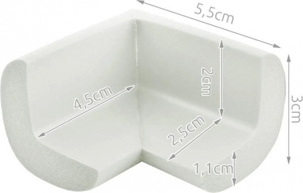 Praktické pěnové chrániče rohů ve sněhově bílé barvě chrání před nárazy o ostré hrany stolů, skříněk či schodů. Měkká a elastická pěna, jednoduchá instalace pomocí silné oboustranné pásky a snadná údržba pro bezpečnější domov zejména s dětmi.