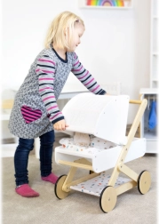 Objevte kvalitní kočárek pro panenky, který skvěle zapadne do každého dětského pokoje. Kombinuje přírodní dřevo, odolné a omyvatelné textilie a jemnou paletu barev. Nízká váha a stabilní konstrukce zaručí bezpečnou jízdu, zatímco pogumovaná kolečka se postarají o tichý provoz na jakémkoli povrchu.