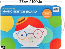 Tato kreslící tabulka má kompaktní rozměry 27x19x1 cm a obsahuje snadno použitelnou tužku připevněnou k tabulce šňůrkou. Díky mizítku a šablonám mohou děti snadno proměnit své nápady v nové výtvory!