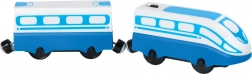 Tato vysokorychlostní elektrická lokomotiva s vagónkem je ideální doplněk každé dřevěné vláčkodráhy. Díky kompaktním rozměrům, snadnému ovládání a magnetickému spojení vagónku poskytne dětem hodiny zábavy a zároveň rozvíjí jemnou motoriku i představivost.