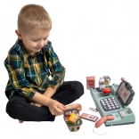 Pokladna zahrnuje terminál, díky kterému může dítě provádět platby hotovostí, kartou nebo smartphonem, stejně jako dospělí v obchodě. Integrovaná váha a pohyblivý pás umožňují dítěti uspořádat nákupy a zažít skutečnou roli prodavače.