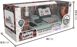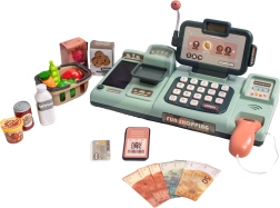 Součástí je pokladna s váhou, terminálem, kalkulačkou, skenerem a mnoha doplňky, včetně herního smartphonu a různých druhů plastových potravin.