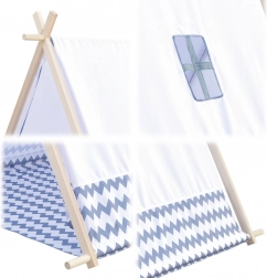 Stylový dětský stan v bílo‑šedém provedení přináší dětem spoustu zábavy, objevování a bezpečné místo pro hraní. Má vzdušné okénko, otevřený závěs dveří a podlahu. Textilní plachta je ze 100% polyesteru, konstrukce z dřeva. Vhodné do pokojíčku i na zahradu, snadno se složí a uklidí. Pro děti od 3 let.