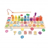 Tato hračka podporuje rozvoj kreativních a logických schopností prostřednictvím zábavných aktivit jako je rybaření a stohování.