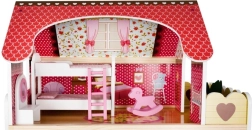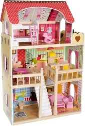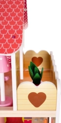 Domeček dosahuje výšky 90 cm, což ho činí jedním z největších na trhu. Je vyroben z pevného dřeva, které zajišťuje stabilitu a bezpečnost při hraní.