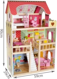 Dřevěný domeček pro panenky je dokonalým herním prostředím pro vaše děti. Se svou výškou 90 cm se jedná o jeden z největších modelů na trhu, který je perfektní pro hru i pro větší děti. Konstrukce z kvalitního dřeva zajišťuje stabilitu a bezpečnost, a proto se během hraní nepřevrátí.