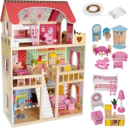 Dřevěný domeček pro panenky je ideálním místem pro kreativní hraní. Nabízí více úrovní a pokoje, oslnivou LED osvětlení a bohatě vybavené interiéry pro hodiny zábavy.