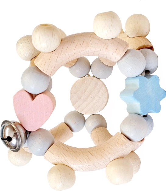 Dřevěné motorické chrastítko od značky Hess zaujme pastelovými barvami a rolničkou, které podporují představivost a zlepšují jemnou motoriku dítěte.