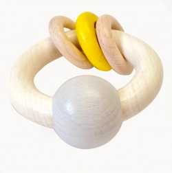 Dřevěné chrastítko pro vaše děti pomáhá rozvíjet první motorické dovednosti a je ideálním společníkem jak doma, tak na cestách. Všechny materiály jsou odolné proti slinám, což chrání hračku před poškozením.