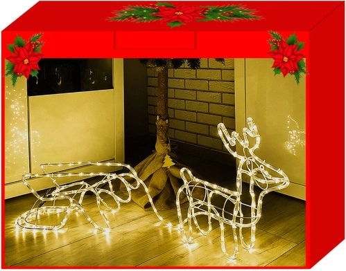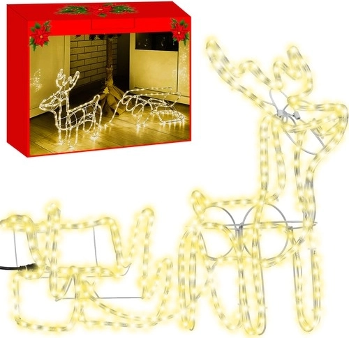 Stylová vánoční dekorace ve tvaru soba s LED osvětlením v teple bílé rozzáří váš domov i zahradu. Pevný kovový rám s bílým nátěrem a LED v průhledné trubici zajišťují odolnost vůči povětrnostním podmínkám a energeticky úsporný provoz pro dlouhé zimní večery.