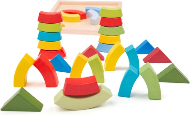 Dřevěné oblouky a trojúhelníky BIGJIGS TOYS jsou ideální pro volnou hru. Děti mohou skládat, stavět a experimentovat s tvary i rovnováhou, čímž přirozeně rozvíjejí představivost a logické myšlení. Praktická dřevěná základna usnadňuje ukládání i přenášení.