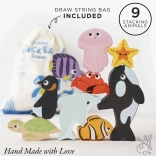 Tato kvalitní dřevěná skládačka s motivem oceánu přináší dětem od 18 měsíců hodiny bezpečné a tvořivé hry. Dílky ve tvaru velryby, delfína, hvězdice, tučňáka, mořské želvy, medúzy a dalších mořských kamarádů jsou navrženy tak, aby se dětem dobře držely, a podporují koordinaci oko–ruka, trpělivost a fantazii.
