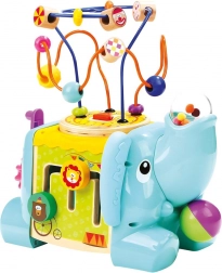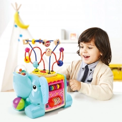 Tato vícefunkční motorická kostka ve tvaru slona je ideální edukační hračka pro nejmenší. Díky barevným prvkům a rozmanitým aktivitám děti přirozeně trénují jemnou motoriku, prostorové vnímání a senzorické dovednosti. Vrchní část tvoří motorický labyrint s korálky, boky zdobí ozubená kolečka, posuvné dílky a další chytré úkoly.