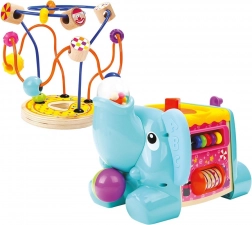 Hračka povzbuzuje děti k objevování a učení formou hry – od rozlišování barev a tvarů až po řešení jednoduchých úloh. Odolná kombinace dřeva, kovu a plastu zaručuje stabilitu a dlouhou životnost, zatímco zaoblené hrany a kvalitní zpracování myslí na bezpečnost při každodenním hraní.