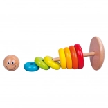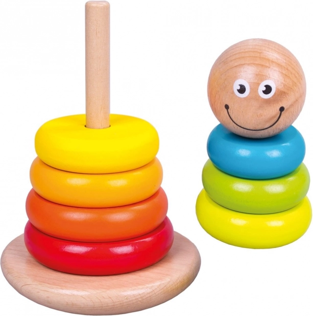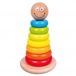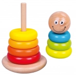 Klasická dřevěná hračka pro nejmenší, která rozvíjí jemnou motoriku, koordinaci oko–ruka a poznávání barev. Barevné kroužky se snadno navlékají na dřevěnou tyč a veselá hlavička dodá hraní zábavu. Vyrobeno z kvalitního dřeva, splňuje evropské bezpečnostní normy a je ideální pro děti od 18 měsíců.