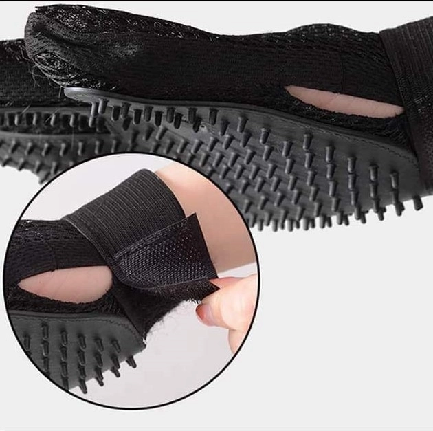 Nastavitelné zapínání na suchý zip zajišťuje stabilitu a přilnutí k ruce. Rukavice sedí na rukou různých velikostí a neklouže během česání.