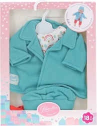 Obleček Petitcollin Arthur promění každou panenku o velikosti 36 cm v elegantního parťáka na hraní. Sada kombinuje tyrkysovou fleecovou mikinu, veselou vzorovanou blůzu, červené krátké kalhoty a ladící čepičku – dohromady vytváří atraktivní a pohodlný outfit pro každodenní dobrodružství.
