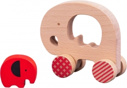 Hračka rozvíjí dovednosti při tahání a tlačení, trénuje úchop a prostorovou představivost díky slůněti, které se vkládá do otvoru uprostřed. Odolná konstrukce z bukového masivu zaručuje dlouhou životnost a snadnou údržbu.