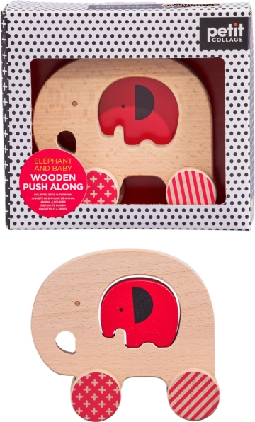 Roztomilý dřevěný slon se slůnětem od PETIT COLLAGE kombinuje tahací hračku a jednoduché puzzle. Je vyroben z 100% FSC dřeva, lakován netoxickými barvami na bázi vody a dodáván v dárkovém balení. Podporuje jemnou motoriku, koordinaci a fantazii dětí již od 12 měsíců.