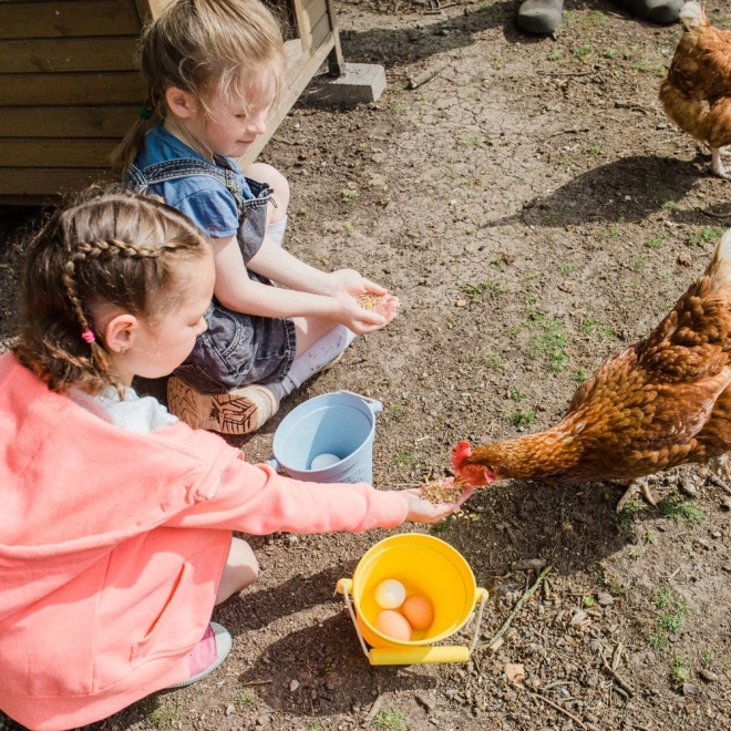 Hodí se na zahradu, na dvorek i na výlety. Děti mohou nosit vodu, sbírat přírodniny nebo pomáhat s drobnými úkoly – vždy bezpečně a zábavně.