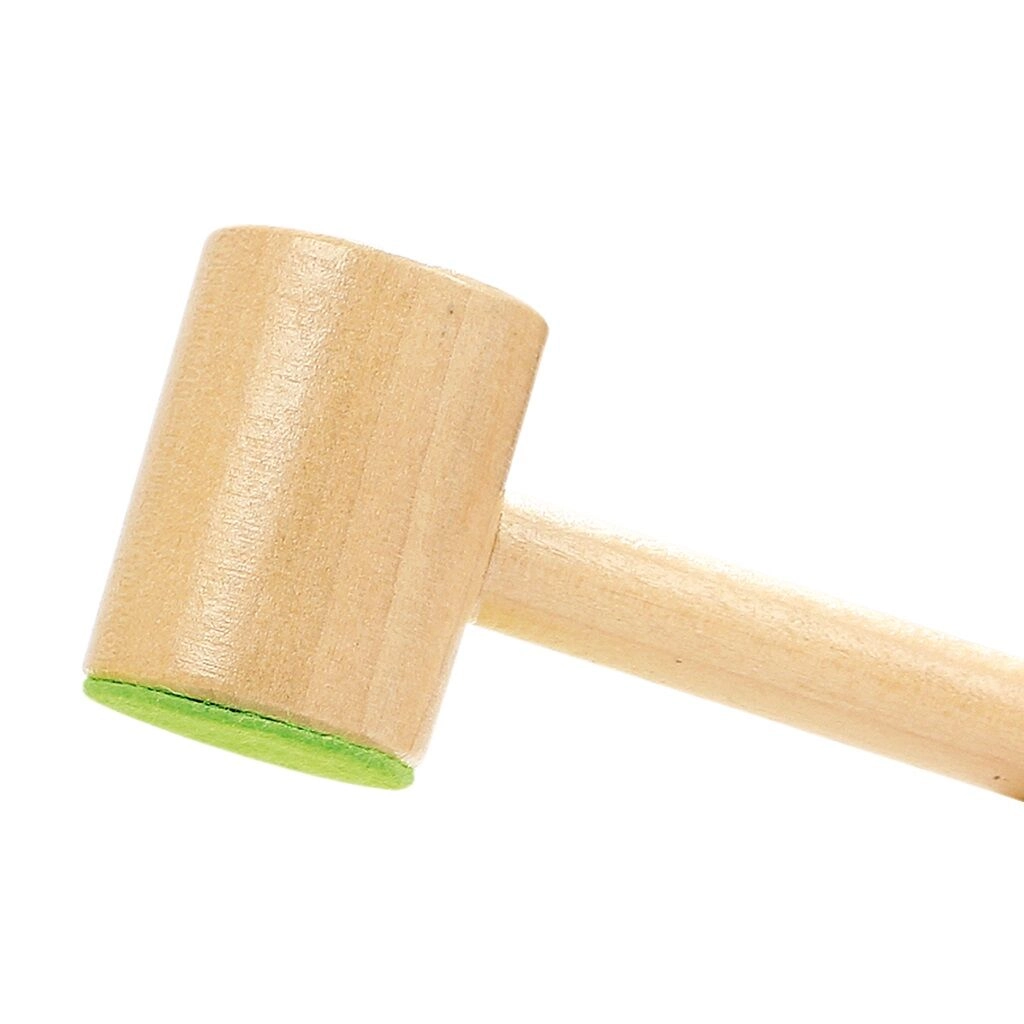 Dřevěné kladívko s plstěným potahem tlumí hluk a chrání povrch hračky, takže je hra příjemná i pro rodiče.