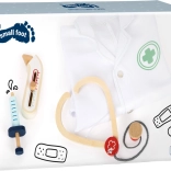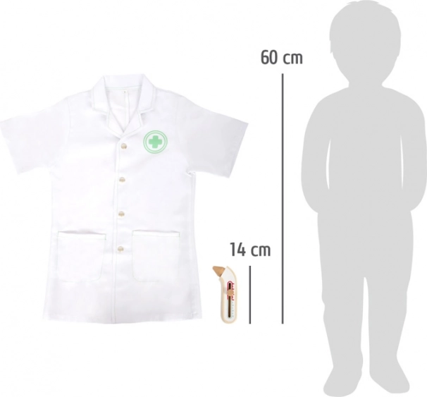 Objevte zábavný a realistický způsob hraní na povolání s dětským doktorským setem small foot. Souprava zahrnuje látkový lékařský plášť se zapínáním na patentky a robustní dřevěné vybavení – stetoskop, injekční stříkačku s pohyblivým pístem a teploměr s nastavitelným ukazatelem. Ideální pro hraní rolí, karneval i rozvoj fantazie a sociálních dovedností.