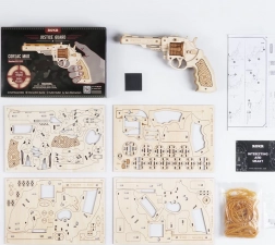 Revolver Corsac od značky Robotime je unikátní dřevěné mechanické puzzle, které nadchne všechny fanoušky DIY projektů. Balení obsahuje vše potřebné pro sestavení revolveru, včetně 102 precizně vyřezaných dílků. Jedná se o skvělý způsob, jak rozvíjet kreativitu a jemnou motoriku. Složení stavebnice je navíc velmi jednoduché, takže je ideální i pro začátečníky.