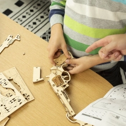 Revolver je vyrobený z kvalitního dřeva a jeho dílky jsou precizně vyřezané, což zajišťuje dokonalé spojení při sestavování.