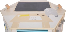 Pevné dřevo, jemně laděné barvy a pogumované nožky šetřící podlahu. Velkorysé rozměry 57 × 50 × 43 cm a výška hrací plochy 32 cm zaručují pohodlnou hru a perfektní stabilitu.