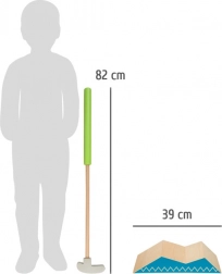 Zábavný dětský minigolf pro domov i zahradu z kvalitního FSC certifikovaného dřeva. Sada obsahuje 3 velikosti holí, měkké bezpečné míčky a variabilní překážky (vlna, houpačka, tunel aj.), které snadno přizpůsobíte věku a dovednostem. Skvěle trénuje zručnost a soustředění a nabízí moderní design s odolným zpracováním.