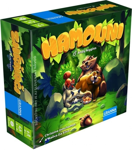 Blíží se zima a lesní zvířátka shánějí zásoby. V HAMOUNI soupeříte o to, kdo jako první shromáždí pět stejných kartiček dobrot. V každém kole si vybíráte dvě karty zvířátek a provádíte jejich akce – potravu můžete poctivě získat, rafinovaně „vypůjčit“ od soupeřů, nebo si své zásoby chytře ubránit.