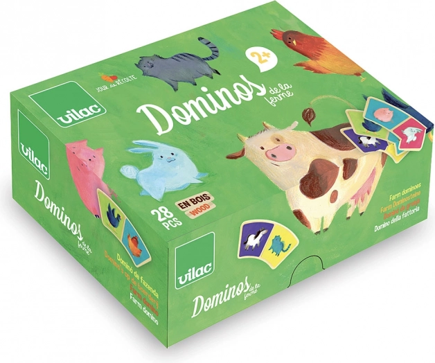 Obohaťte hru vašich dětí touto originální sadou domino s nádherným farmářským motivem od značky Vilac. Díky obloukovitému tvaru jsou dominové dílky nejen unikátní, ale také snadno uchopitelné i pro malé dětské ruce. Sada obsahuje celkem 28 dřevěných dílků, které poskytnou nekonečné hodiny zábavy. Hra domino přispívá k rozvoji pozornosti, jemné motoriky a logického myšlení.
