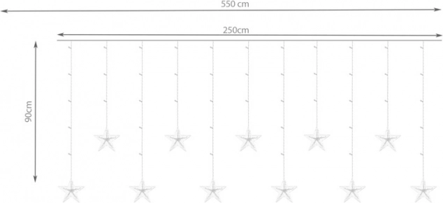Světýlka jsou umístěna na odolném silném kabelu, který zaručuje dlouhou životnost. Závěs s hvězdičkami můžete zavěsit na záclonovou tyč a proměnit tak obyčejné záclony ve sváteční dekoraci, nebo jím dokonce nahradit závěsy!
