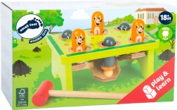 Zatloukání krtků kladívkem posiluje koordinaci oko–ruka, přesnost i soustředění – ideální pro první motorické výzvy.