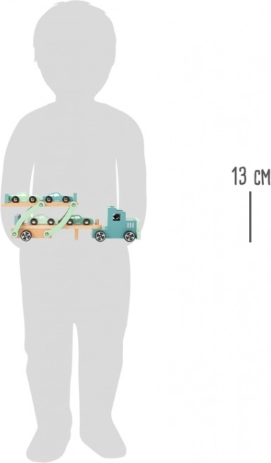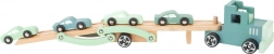 Set obsahuje kamion s návěsem a celkem čtyři sportovní autíčka. Hra rozvíjí koordinaci oko–ruka, jemnou motoriku i kreativní vyprávění příběhů. Díky kvalitním materiálům a hladce opracovaným hranám je hračka vhodná pro děti od 3 let.