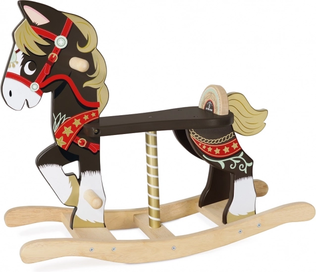 Dopřejte dětem nadčasovou radost s dřevěným houpacím koníkem z kolekce Petilou. Robustní konstrukce, hladké hrany, opěrná madla a pohodlné sedlo zajišťují bezpečí i pohodlí při jízdě. Elegantní dekor s hnědými a zlatými akcenty ozdobí každý pokojíček.
