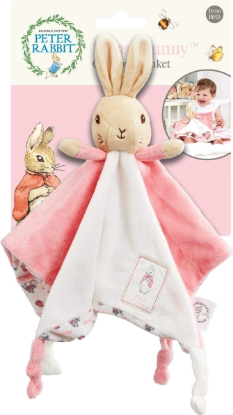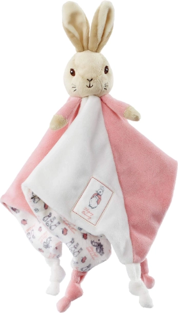 Barvy a vzory králíčka stimulují rozvoj dětských smyslů, zatímco uzlík na rohu dečky je ideální ke kousání.