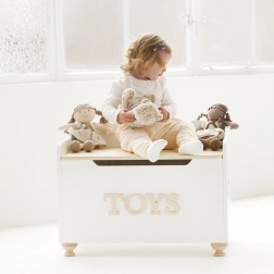 Dřevěná truhla na hračky od Le Toy Van je nejen stylová, ale i praktická. Poskytuje spolehlivý prostor pro uložení hraček a pokladů dětí. Design kombinuje klasickou bílou barvu s přirozeným dřevem, což je ideální do jakéhokoliv interiéru. Díky pomalým zavíracím pantům a dřevěným nohám je truhla bezpečná pro děti.