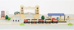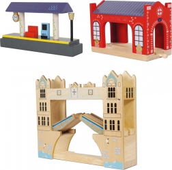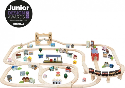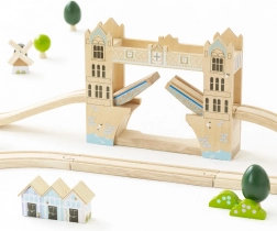 Tato velká dřevěná vláčkodráha zavede děti do srdce města inspirovaného Londýnem. Díky bohaté výbavě – od nádraží přes pestrobarevné budovy až po ikonický zvedací most – nabízí nespočet herních scénářů a podporuje otevřenou, představivou hru. Dva vlaky s magnetickými vagóny se snadno spojují a bezpečně jezdí po stabilních dřevěných kolejích.