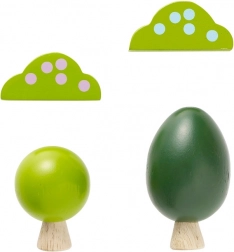 Vláčkodráha je vyrobena eticky z kvalitního, udržitelného dřeva a ručně domalována ekologickými, netoxickými barvami na vodní bázi. Hra s vláčky přirozeně rozvíjí jemnou motoriku, koordinaci ruka–oko, slovní zásobu i sociální dovednosti při společné hře. Set je plně kompatibilní s většinou standardních dřevěných systémů (např. BRIO), takže sbírku snadno rozšíříte.