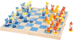 Objevte šachy, které děti opravdu baví! Masivní dřevěná deska s modro-přírodními poli a hravými figurkami vyniká odolností a přehledností. Díky skládací konstrukci slouží i jako kazeta na bezpečné uložení dílků – vše máte pohromadě a připravené k rychlé partii.