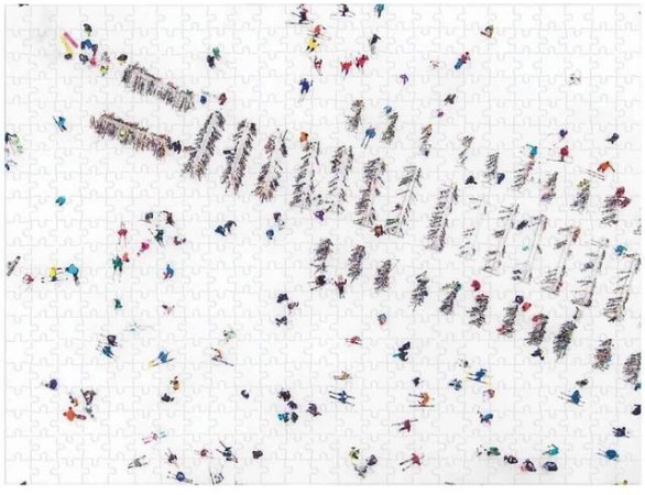 Objevte nadčasové letecké snímky GRAY MALIN v podobě prémiového oboustranného puzzle. Jedna strana vás zavede do klidné zimní scenérie s zasněženými stromy, druhá ožije dynamikou barevných lyžařů na ostrém bílém sněhu. Každý dílek přesně zapadá, takže skládání je plynulé a uspokojivé.