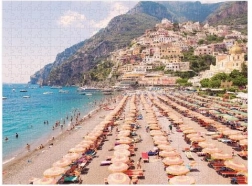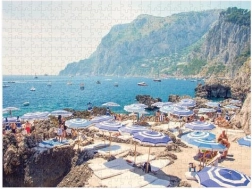 Objevte kouzlo italského pobřeží s oboustranným puzzle, které přináší dvě působivé letecké fotografie plné slunce, tyrkysového moře a ikonických plážových slunečníků. Jedna strana je lesklá, druhá matná, takže snadno rozlišíte, kterou skládat. Díky preciznímu výřezu je skládání plynulé a uspokojivé.