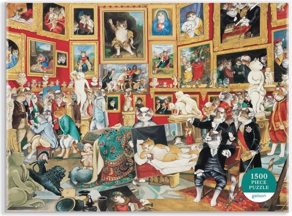 Hotové puzzle o rozměrech 81,3 × 60,3 cm poslouží jako originální dekorace s vtipným motivem koček v galerii.
