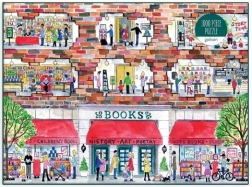 Puzzle obsahuje pečlivě vykreslené scénky, které dokonale zachycují atmosféru knihkupectví a městského života.