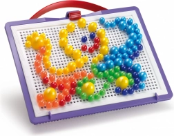 Oblíbená dětská mozaika Quercetti přináší hodiny smysluplné zábavy. Barevné kolíčky různých průměrů se snadno vkládají do odolné perforované desky, což podporuje koordinaci oko–ruka, trénuje trpělivost a posiluje vizuální vnímání barev a tvarů. Díky chytrému kufříku je vše bezpečně uloženo a připraveno na cesty.